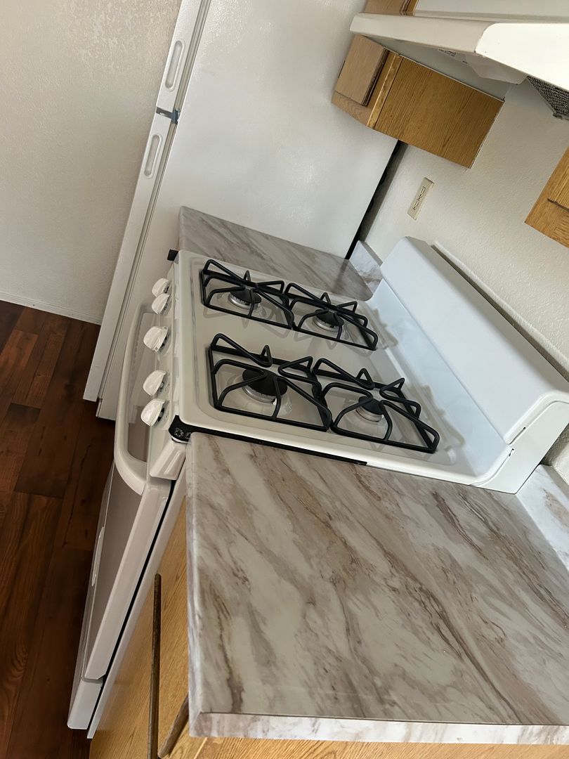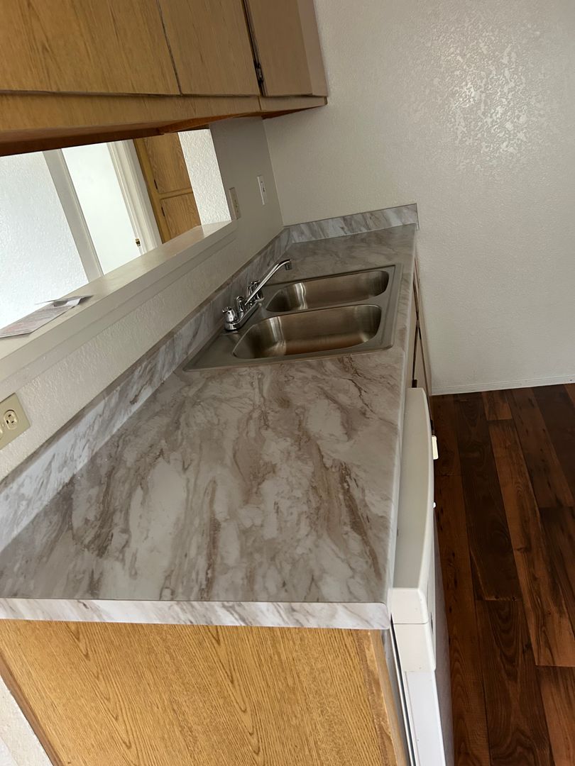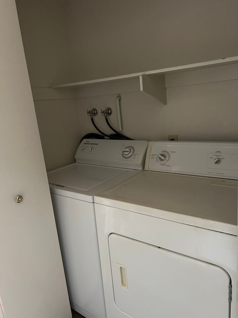 Upon entry, the kitchen, dining, and living room areas are presented as an open floor plan providing an abundance of natural light and convenience for entertaining. A spacious and private patio is accessible from the dining area and is perfect for grilling, tending to plants, or enjoying the fresh air. The wood-burning fireplace in the living room adds character and provides cozy heat during the colder months. The first bedroom is located at the start of the hallway. A full bathroom and laundry closet with a full-size washer and dryer are all located along the hallway. The master bedroom is located at the end of the hallway and offers a walk-in closet and a second full-size bathroom.
