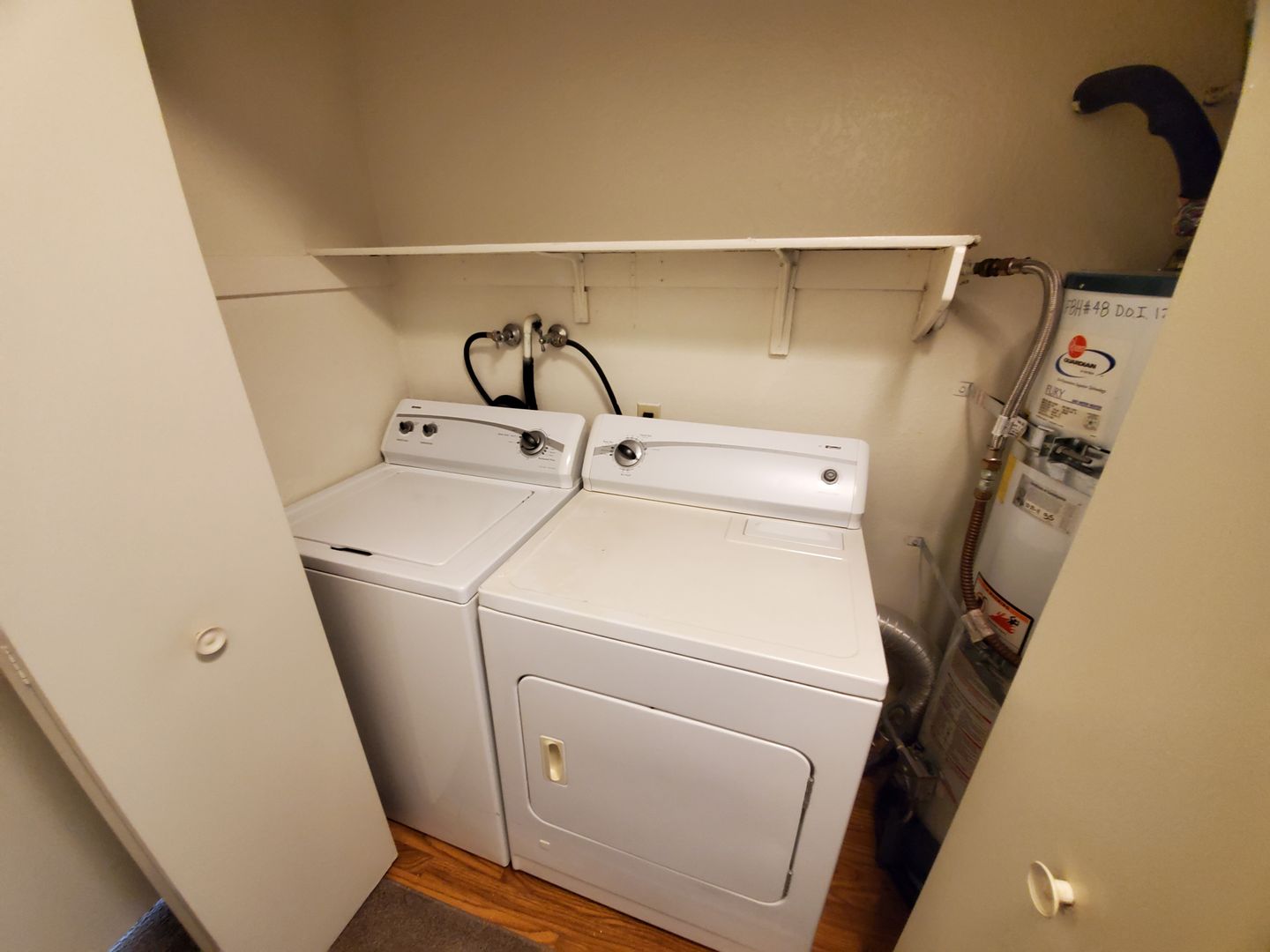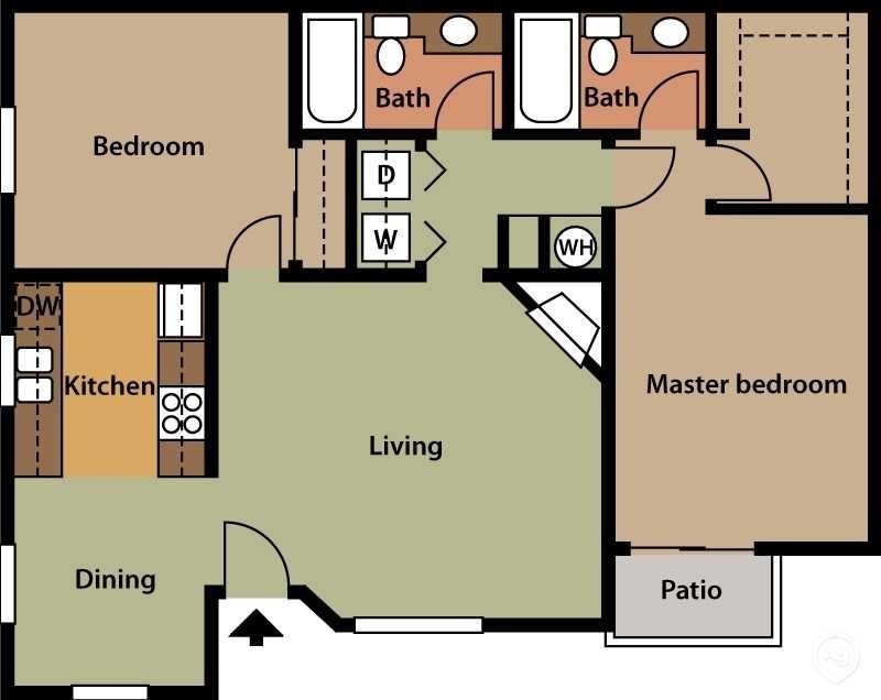 Upon entry, the kitchen, dining, and living room areas are presented as an open floor plan providing an abundance of natural light and convenience for entertaining. A spacious and private patio is accessible from the dining area and is perfect for grilling, tending to plants, or enjoying the fresh air. The wood-burning fireplace in the living room adds character and provides cozy heat during the colder months. The first bedroom is located at the start of the hallway. A full bathroom and laundry closet with a full-size washer and dryer are all located along the hallway. The master bedroom is located at the end of the hallway and offers a walk-in closet and a second full-size bathroom.